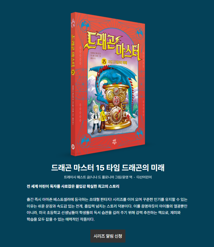 ‘드래곤 마스터’ 15권, 아이는 손꼽아 기다리고 있어요. 책을 사서 전해줄 날을 우리 둘 다 기대하고 있답니다. 이 시리즈를 통해 아이는 상상력과 함께 마음도 자라고 있어요. 아직 드래곤 마스터를 만나보지 않았다면, 지금부터 시작해 보셔도 좋아요. 그리고 이미 빠져든 아이들이라면, 15권 출간은 또 한 번의 성장과 모험을 선물해줄 소중한 시간이 될 거예요.